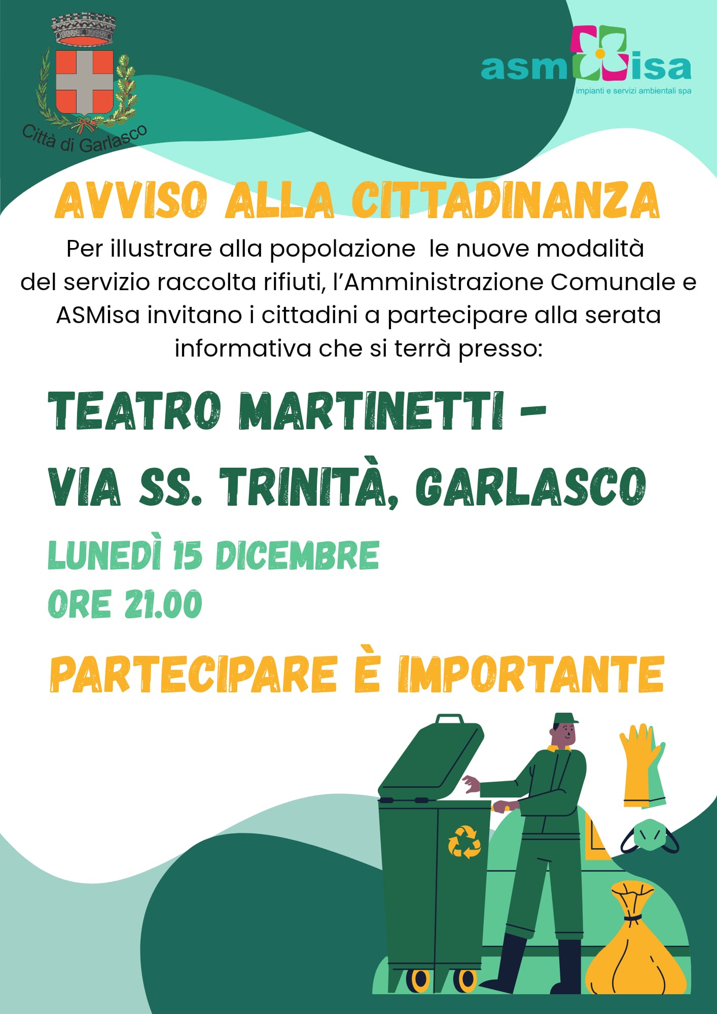 L'Amministrazione comunale invita la cittadinanza a partecipare all'incontro informativo relativo alle nuove modalità di raccolta differenziata porta a porta che partiranno dalla seconda metà di Gennaio 2026.